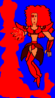 Flames with a wand. Gramps: "Sacred Flames, I seek your guidance. I must