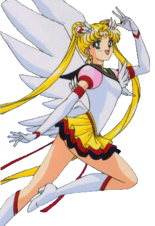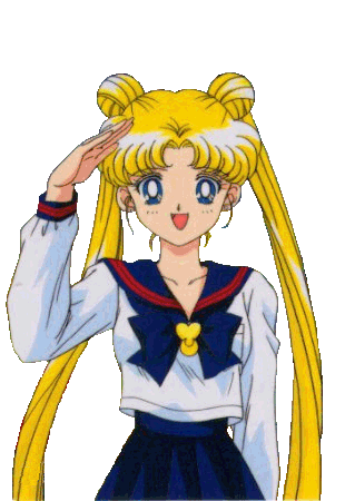 Tsukino Usagi. Inner Senshi. Usagi is the leader of the inner senshi. She has many forms, including Neo-Queen Serenity, Princess Serenity, Sailor Moon, Super Sailor Moon, and Eternal Sailor Moon. She has a ton of attacks as well. Usagi herself is a rash, crybaby, klutzy teenager. She really loves food and eats a ton of it but hardly ever gains a pound. She's very caring and usually gives anyone a second chance to redeem themselves. (Even villains.) She's "The one who embraces everything." She's gets bad grades, is always late, cries a lot, and is pretty clumsy, but she's got a heart that shines the brightest and is very self sacrificial for her friends and her love Mamoru. (Who she calls Mamo-chan.) Sailor Moon has a gazillion strange wands and rods. As a student she usually has regular school stuff. Sailor Moon's Attacks Include: Moon Tiara= 2d18 Various Wand Attacks All=2d25 A few words from the real Usagi: "I don't want to study today, I want a date with Mamo-chan." "You're so mean!" "WANNHHHHH!" "EH?" "I'm not a dumpling!" Hey look odango atama finally finished a profile! ::pats one of Usagi's odangos, hoping she doesn't rattle the brain cell in it:: Here you all g--oh great! ::takes the profile and has to fix it all into kanji:: Here...Oy... ::Sweatdrops and looks around at everyone nervously::This reminds me of a book report..I hate book reports! I hate school! That's why sometimes I skip it with Chibi-Usa, Hotaru ::hides from Haruka, Setsuna and Michiru:: and ChibiChibi! I even got Ami-Chan to skip with me once! That was relly suprising, I mean Ami-Chan skipping school! She even lied to the secretary!! Hey you know, this isn't to hard to do.. When everyone turned bad it was soooo scary but I, Sailor Moon, saved the day ::pats herself on the head::eh..::whispers::it wasn't really me but I can take the credit for it cause I'm Sailor Moon. Yup! You know, I have a brother in Ancient China? I do!!! He's not my real brother but he's still my brother. See, he was a Genbu Seishi and I'm..er...was Genbu No Miko and I was talking to him and Michiru and he said he'd wish for a family so me and Michi said we'd be his family! But Michi is only a long lost cousin. Hey, is it illegal for long lost cousins to marry? I hope not cause I think Tomite liked Michiru. But Michiru has Haruka so that wouldn't work. Hmm..::ponders:: I kinda like Tomite too but he's my brother and I have Mamoru so no... But I have to set my poor Onii-Chan up with someone, but I'm not in China anymore so I can't do that, can I? I miss my Onii-Chan but he gave me a necklace ::holds it out so everyone can see:: isn't it so pretty!!? You know, I'd like to know why everyone calls me odongo atama and picks on me.. Hmm..well everyone picks on Haruka and the Starlights more so it's ok! I'm kinda glad that Chibi-Usa is back cause I missed her a tiny bit but don't tell her that!! Ut-oh..now for my least favorite part of a book report..writing a..what it called..concussion? No that's not it..a conductor? No that's not it either. Well I don't know so you'll have to figure it out for yourself. I know how I'll end it!!! The End!! Quotes "Why does everyone hate me??" "Haruka threw my present in the pond!!" "Yeah Ruka, fetch!" "I want cookie soup!!" "Haruka..can you shove Yaten's head through a tree?" ::smiles intelligently and walks into a pole:: Our Usagi is played by "KawaiiBaka".(Which means Cute Idiot in Japanese. How....appropriate. ^_^;). This is a midi picked by our odango atama, it's from Ranma... and I forget the name of it... I just call it "Lonely Girl" I should go check out the name on my tape shouldn't I...?